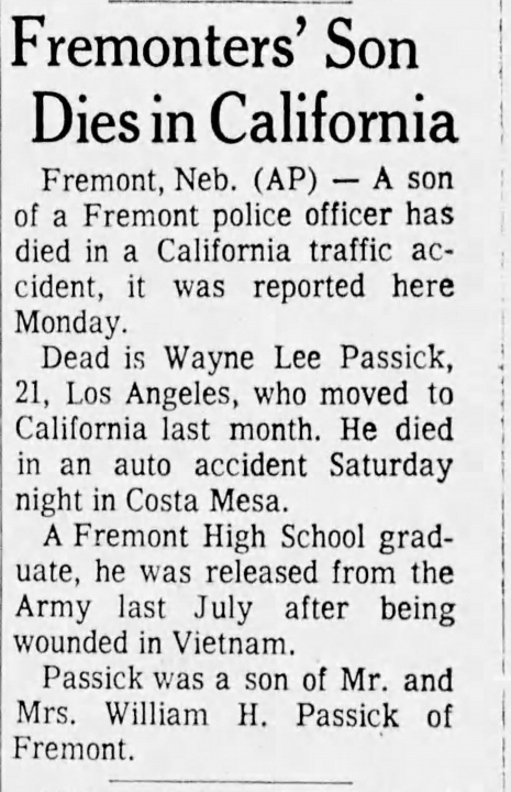 Wayne Passick attended Fremont High School in Fremont, NE. View the obituary, post a memory, or share a photo about Wayne Passick.