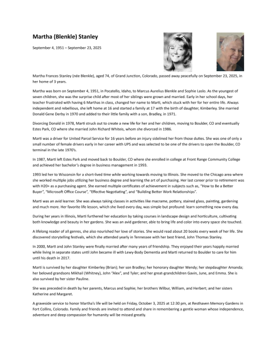 Martha Frances 'marti' Blenkle Stanley