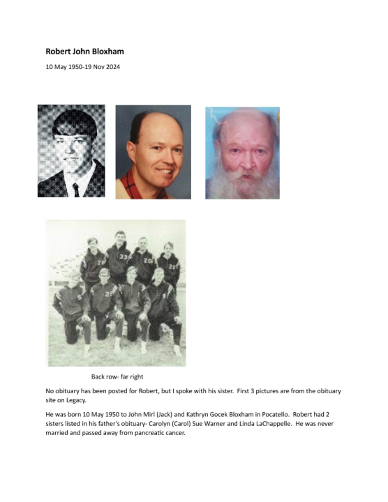 Robert John Bloxham attended Highland High School in Pocatello, ID.