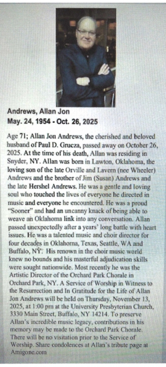 Born May 24, 1954, Allan Jon Andrews was faculty at Lawton High School in Lawton, OK. View the obituary, post a memory, or share a photo about Allan Jon Andrews.