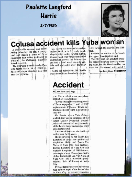 Paulette (Langford) Harris attended Marysville High School in Marysville, CA. View the obituary, post a memory, or share a photo about Paulette (langford) Harris.