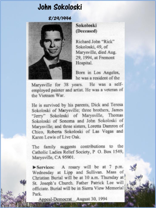 Richard Sokoloskie attended Marysville High School in Marysville, CA. View the obituary, post a memory, or share a photo about Richard Sokoloskie.