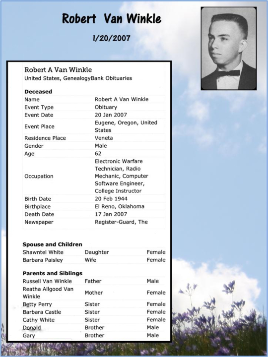 Robert Adron Van Winkle Obituary (1944 - 2007)