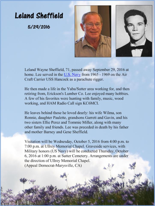 Leland Scheffield attended Marysville High School in Marysville, CA. View the obituary, post a memory, or share a photo about Leland Scheffield.