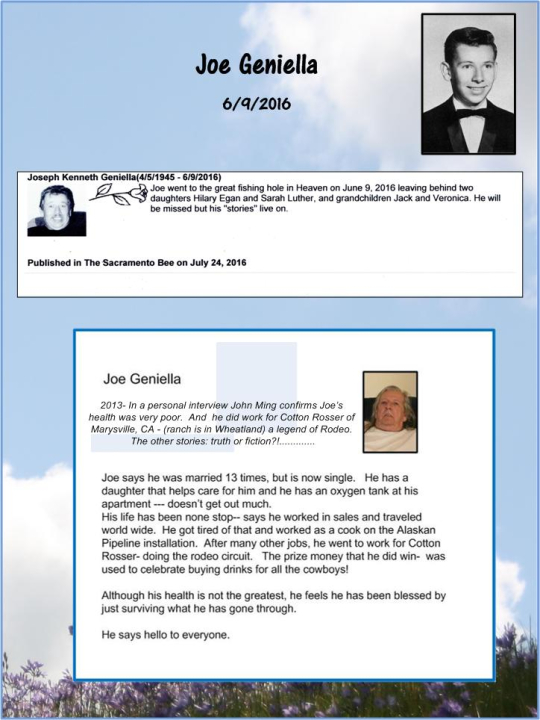 Born Apr 05, 1945, Joe Geniella attended Marysville High School in Marysville, CA. View the obituary, post a memory, or share a photo about Joe Geniella.