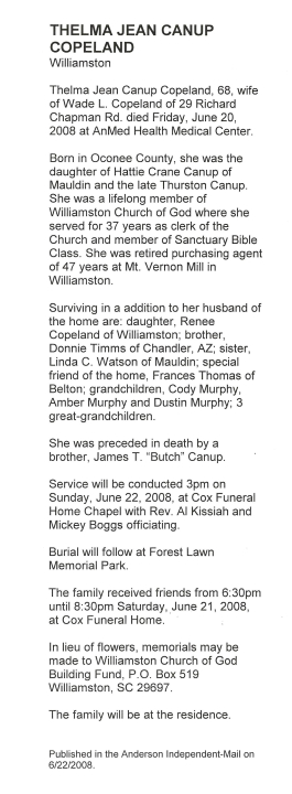Jean Canup Copeland Obituary