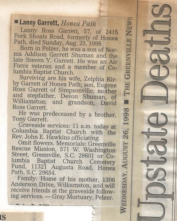 Lanny Garrett Obituary