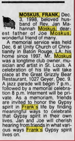 Frank Moskus attended Roosevelt High School in St. Louis, MO.