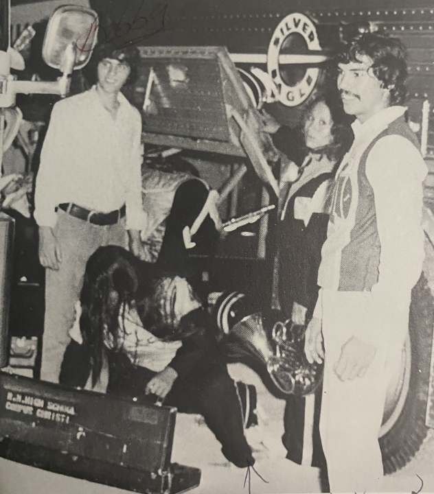 Cheerleader 1972-73 …. Mingling with band members as they prepare to March