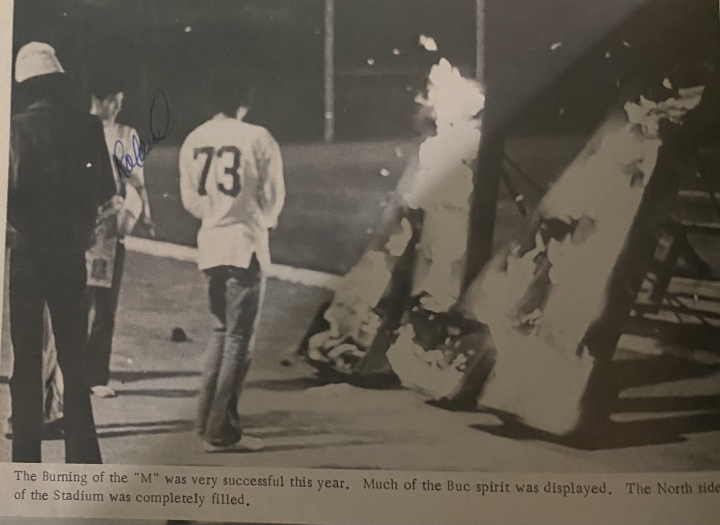 Mike #73 … at the Burning of the “M” pep rally