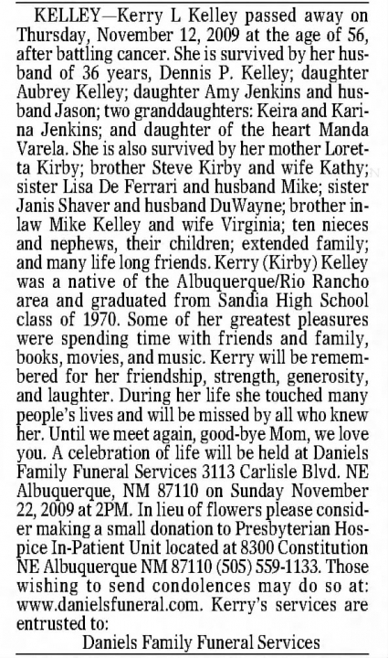 Kerry L. Kirby Obituary (1952 - 2009)