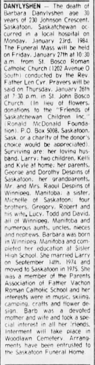 BARBARA A DESPINS attended Sisler High School in Winnipeg, MB. View the obituary, post a memory, or share a photo about Barbara A Despins.