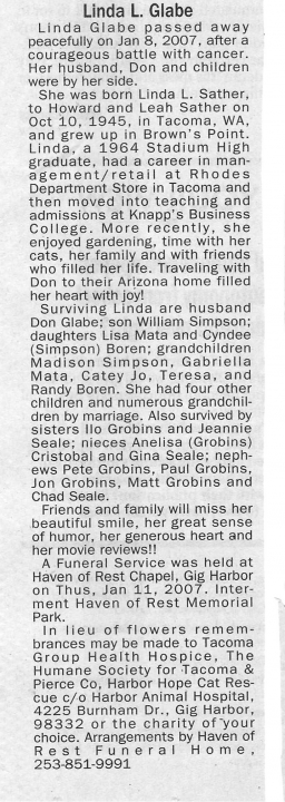 Linda Sather Glabe Obituary (1945 - 2007)
