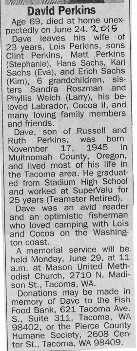 Born Nov 17, 1946, Dave Perkins attended Stadium High School in Tacoma, WA. View the obituary, post a memory, or share a photo about Dave Perkins.