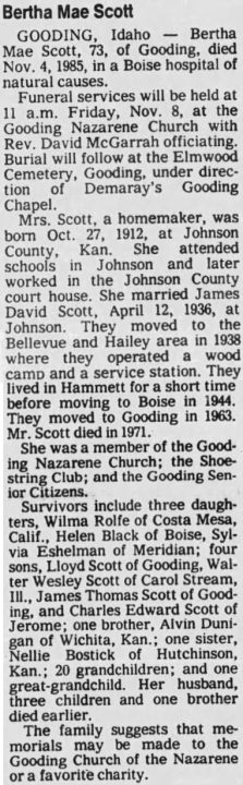 Bertha Mae Dunegan Scott Obituary (1912 - 1985)