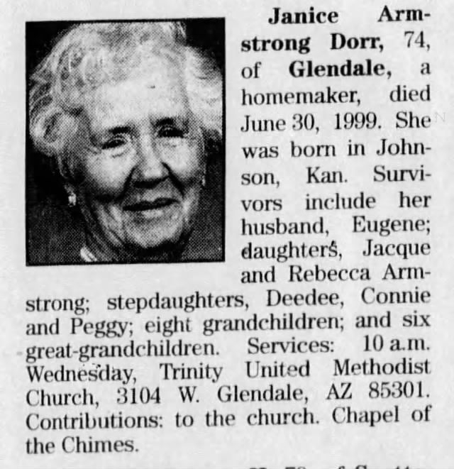 Iva Janice Lane Armstrong Dorr Obituary (1924 - 1999)