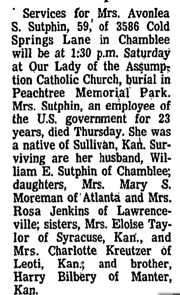 Avonlea Sybil Bilbery Sutphin - M Obituary (1919 - 1978)
