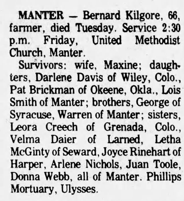 | About | Manter, Kansas https://www.findagrave.com/memorial/20478436/bernard-wayne-kilgore |