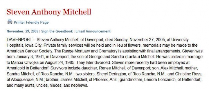 STEVEN ANTHONY MITCHELL attended West High School in Davenport, IA. View the obituary, post a memory, or share a photo about Steven Anthony Mitchell.
