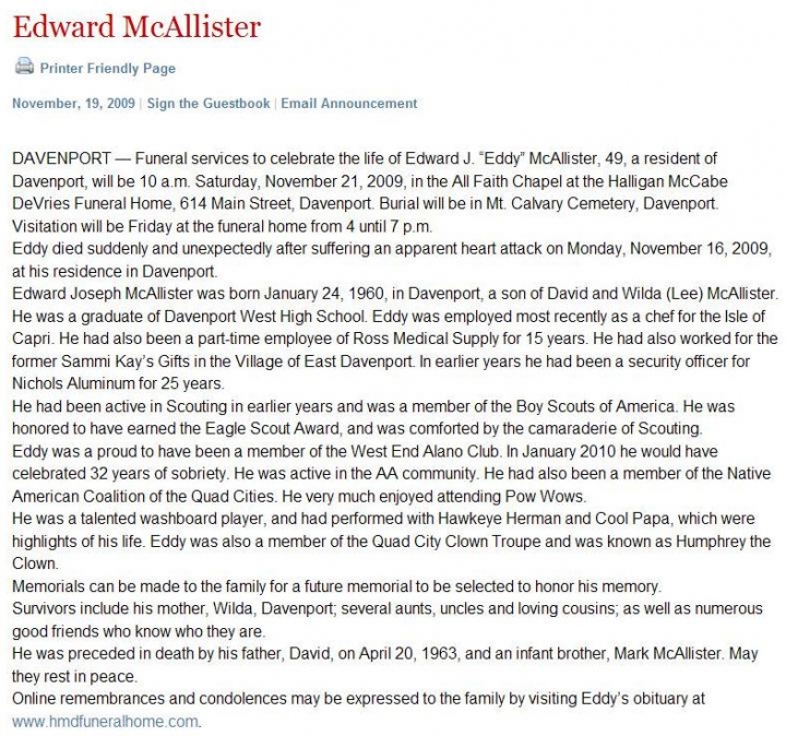 EDWARD MCALLISTER attended West High School in Davenport, IA. View the obituary, post a memory, or share a photo about Edward Mcallister.