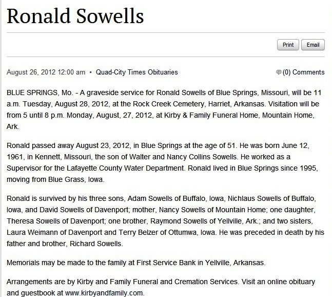 RONALD G SOWELLS attended West High School in Davenport, IA. View the obituary, post a memory, or share a photo about Ronald G Sowells.