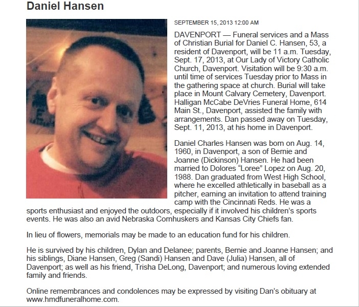 DANIEL C HANSEN attended West High School in Davenport, IA. View the obituary, post a memory, or share a photo about Daniel C Hansen.