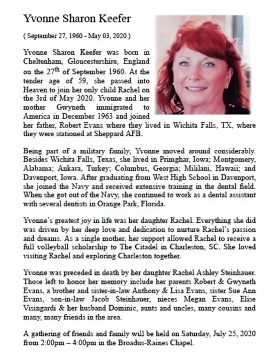 YVONNE SHARON EVANS Obituary