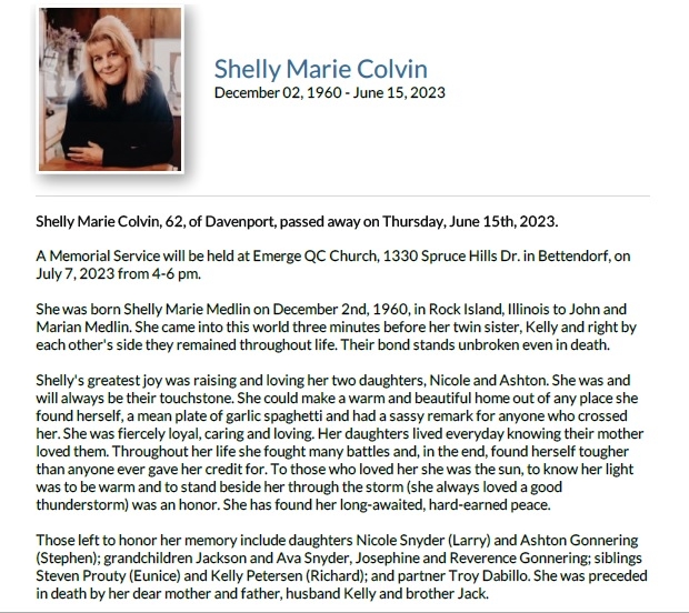 SHELLY MARIE MEDLIN Obituary