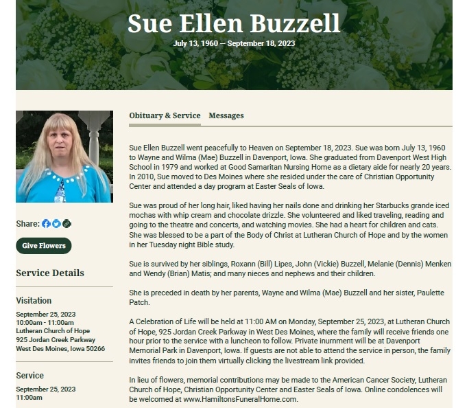 SUE ELLEN BUZZELL Obituary